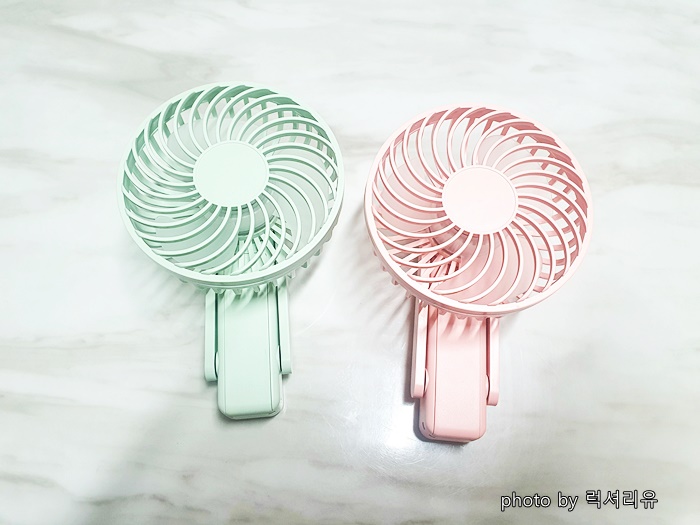 저는 핑크색과 그린색으로 구매했는데요 파스텔톤이라 참 예쁩니다 디자인 심플하고요 선풍기 날개가 다른 제품에 비해 커서 팬이 돌아갈때 제법 시원한 바람이 나옵니다 (얼굴만 깔짝대며 시원함이 아니라 식탁위에 올려놓으면 상반신 전체에 시원한 감이 들어요) 그리고 타제품에 비해 소음이 적어서 3단에 놓아도 부담 없이 사용이 가능해요