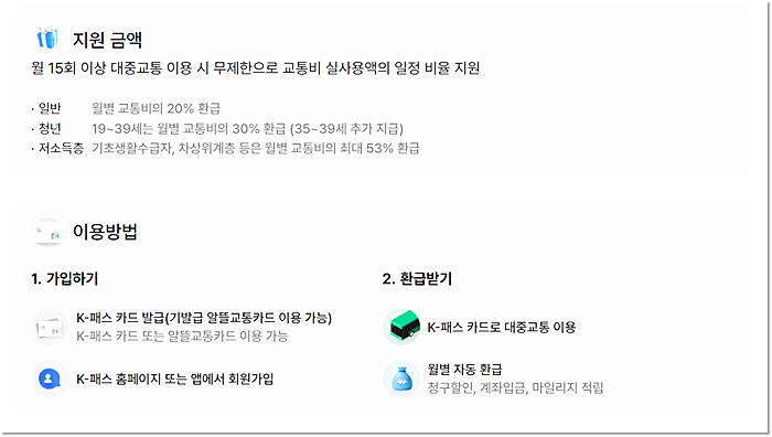 ▶이용방법 : K-패스 또는 알뜰교통카드 준비→ K-패스 홈페이지 회원가입하면 완료!