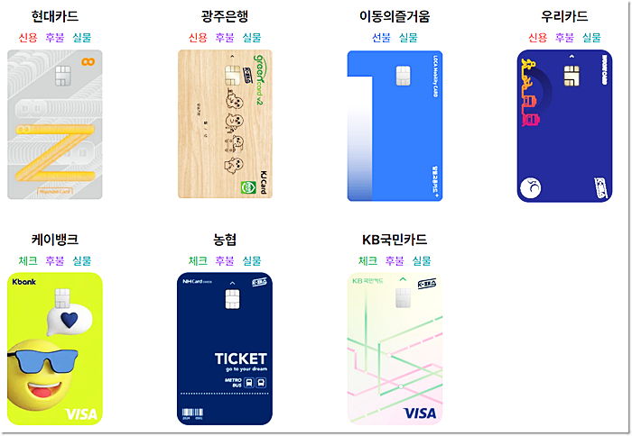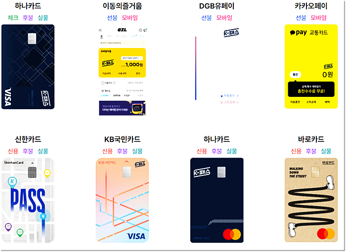 각 카드사별로 신청이 가능한데요. K-패스카드기능이 들어간 실물카드 혹은 모바일 카드만 가능합니다