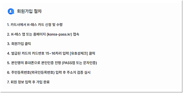 1. 카드사에서 K-패스 카드 신청 및 실물 수령 (실물수령 전 모바일카드로 신청가능)